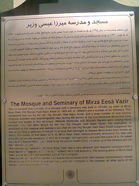 خوب قبل از اینکه براتون از مسجد بگم این را بهتون بگم که اسم کامل این مسجد ؛ مسجد مدرسه عیسی وزیر می باشد.